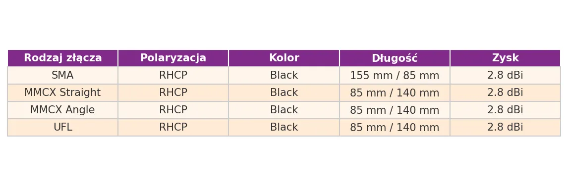 Antena Lollipop 5 5.8GHz 2.8 dBi to sprawdzone rozwiązanie dla pilotów dronów FPV. Dzięki niskiemu współczynnikowi V.S.W.R ≤ 1.5 zapewnia stabilny i czysty obraz, nawet w trudnych warunkach lotu. Dostępna w różnych wariantach złączy (SMA, RP-SMA, MMCX, UFL) oraz długościach, idealnie dopasuje się do Twojego zestawu FPV.