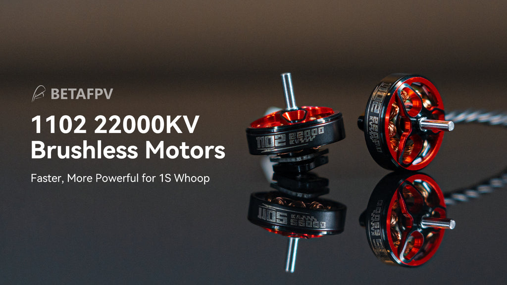 Coming with a new appearance of the black and red motor bell. New 1102 Brushless Motors have been released for stronger thrust in 1S whoop drone with two RPM (revolutions per minute) versions 18000KV or 22000KV, which meets pilots' needs for different flying purposes. This motor is lightweight at 2.79g/pc and is suitable for most 75mm 1S frames like Meteor75 Frame.