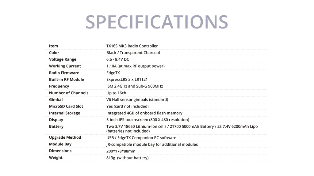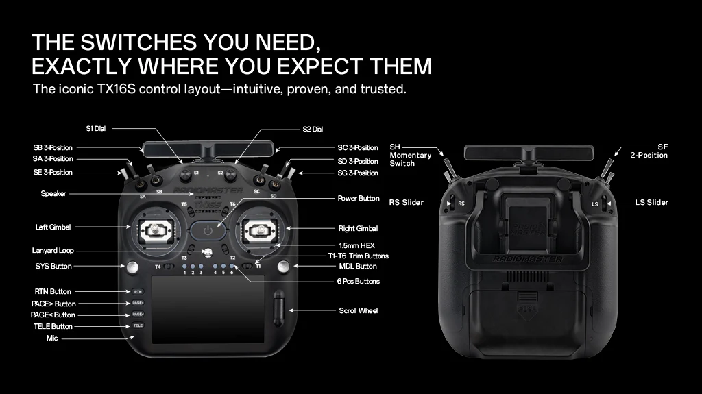 Jasny, 5-calowy ekran IPS o rozdzielczości 800 × 480 zapewnia doskonałą czytelność nawet w pełnym słońcu, umożliwiając wygodną nawigację po menu i łatwe programowanie modelu.