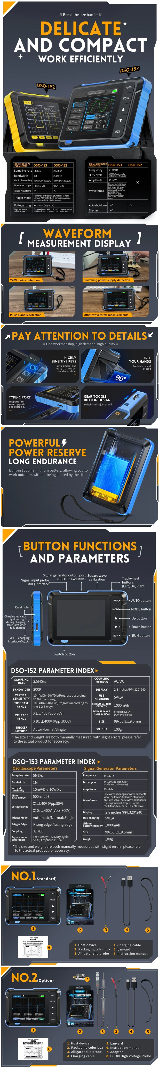 Oscyloskop cyfrowy FNIRSI DSO-153 2w1 1MHz 5MS/s z generatorem sygnału